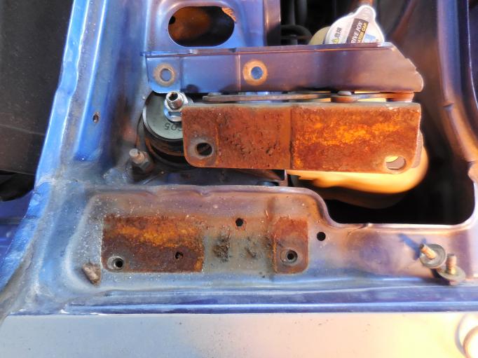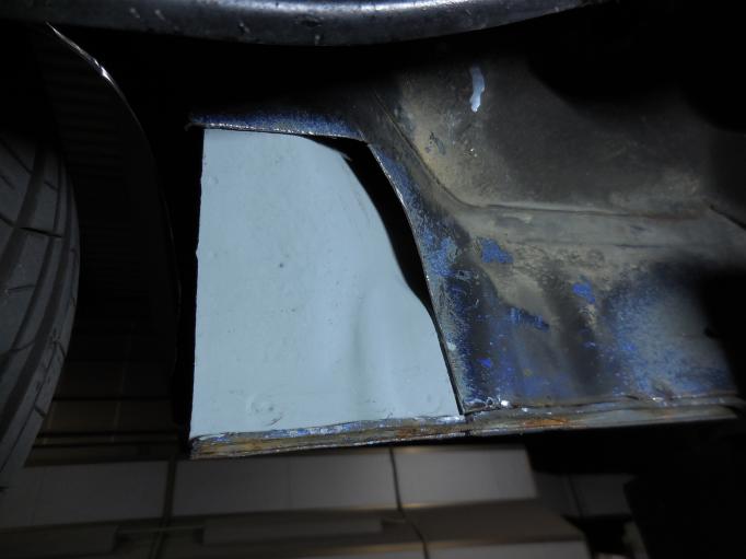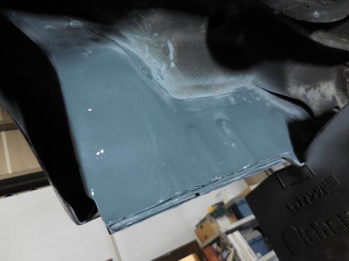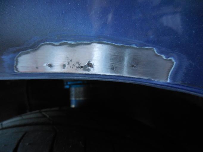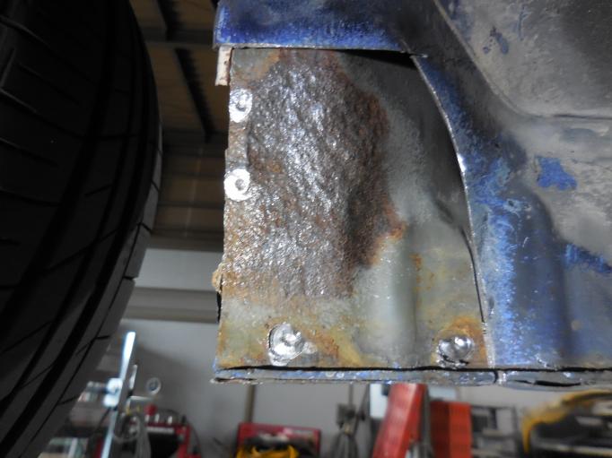 リヤフェンダー裏側の下部です よく錆びるところではあります。 中側は、錆とりをして錆止め、外側は鉄板をはります。 |  |