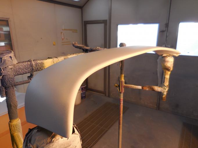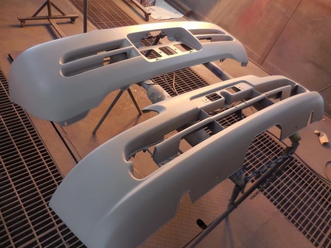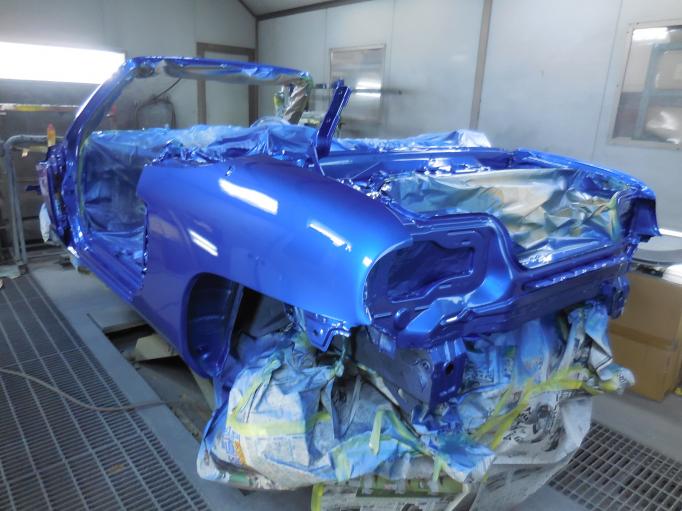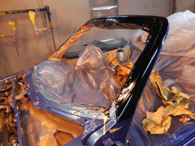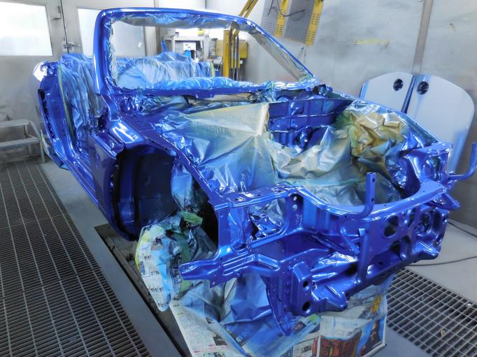 | ボディに色が入りました。 フロントピラーは、少し艶を抑えたフラック仕上げ バンパーや、樹脂部品にも下地をいれます。 テールバースパッキンは新品にします。 |